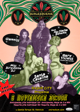 Tras colgar el cartel de SOLD OUT en su primera visita al mítico Radio City Valencia, el cabaret clandestino más provocador y envolvente regresa por demanda popular. Después de conquistar los escenarios de Madrid, Burlesquerie vuelve a abrir sus puertas para una única noche en la ciudad… ¿te atreves a cruzarlas?